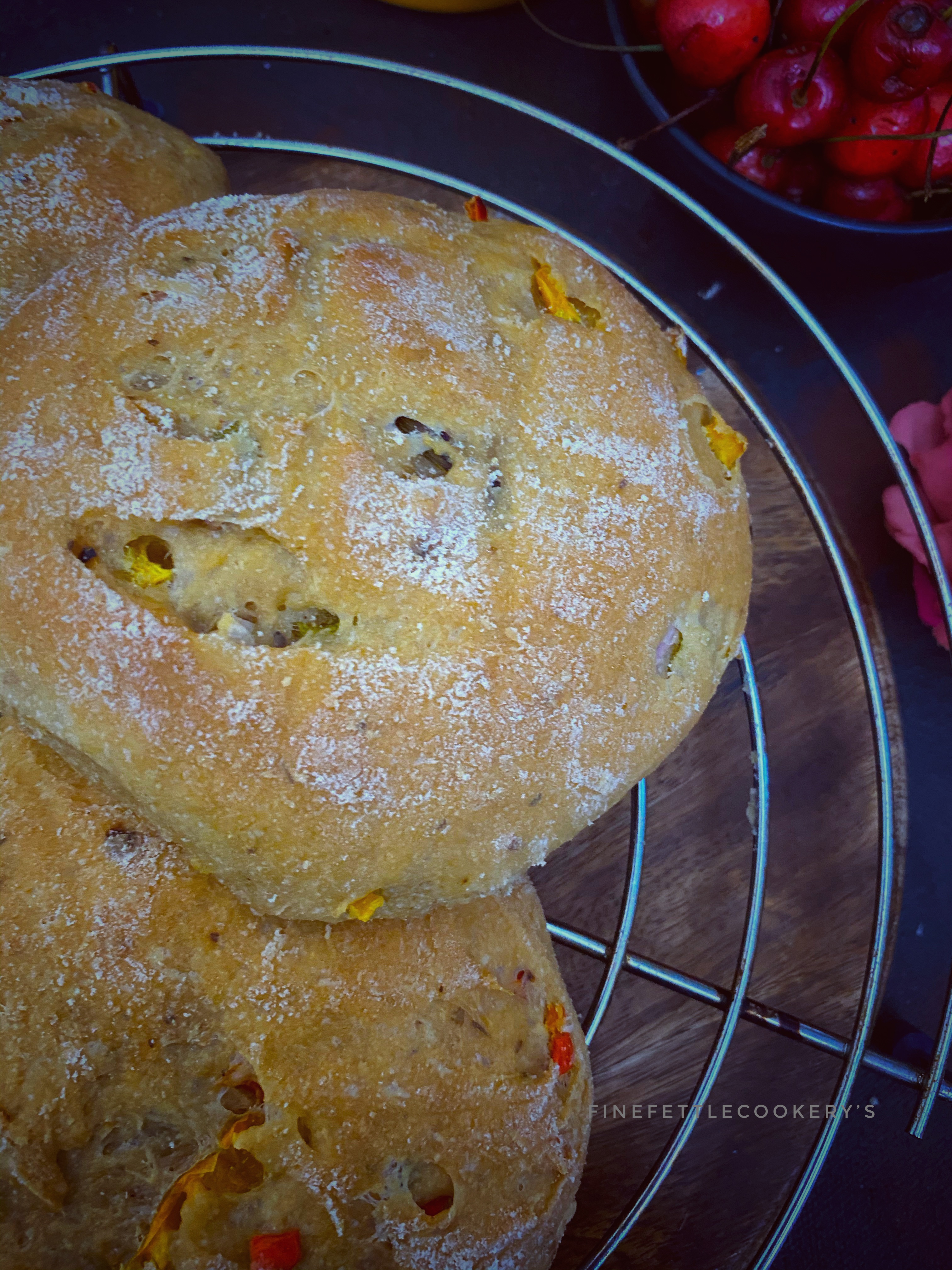 3) Add dried tomatoes and pepper(red and yellow) mix together with the spices and salt