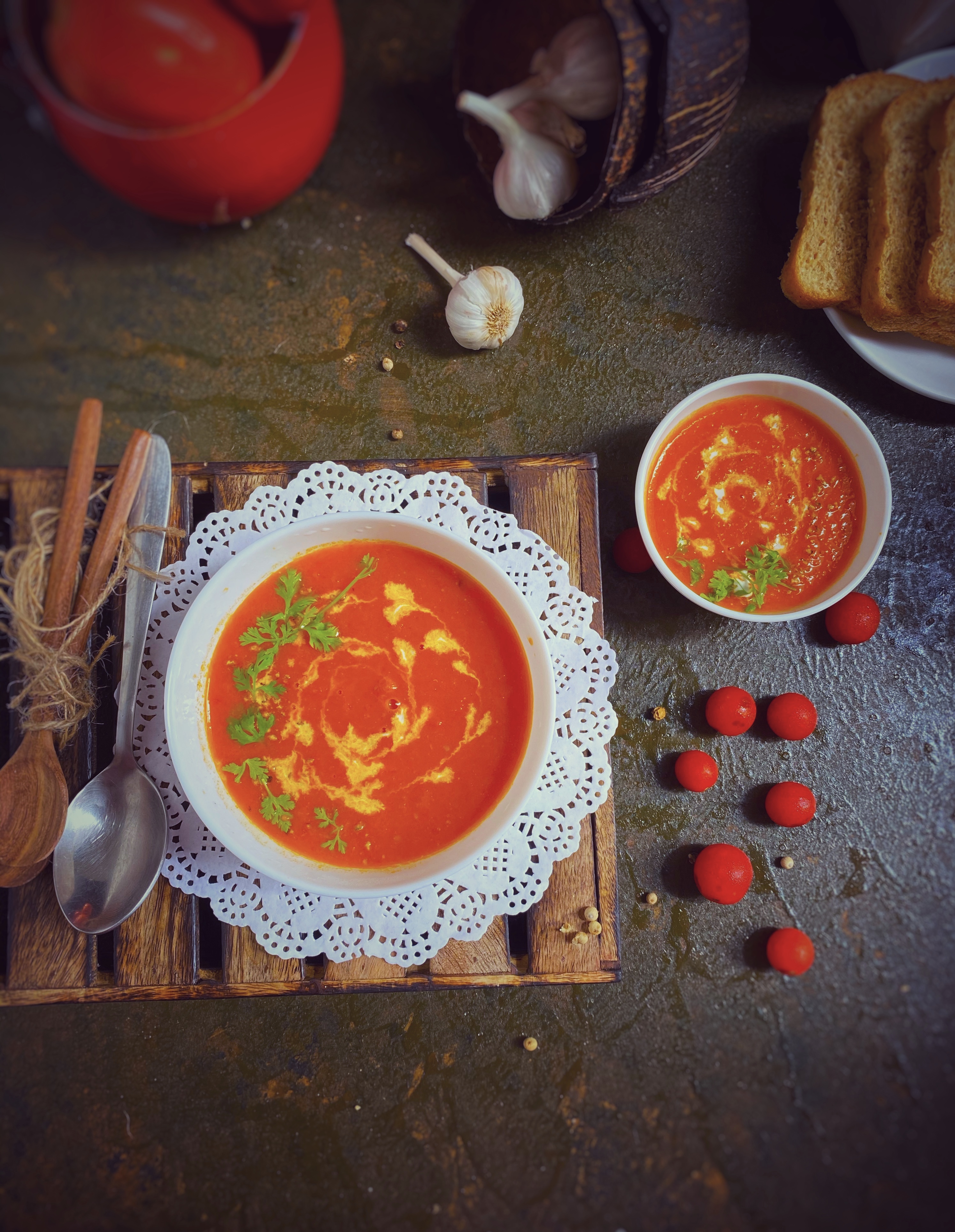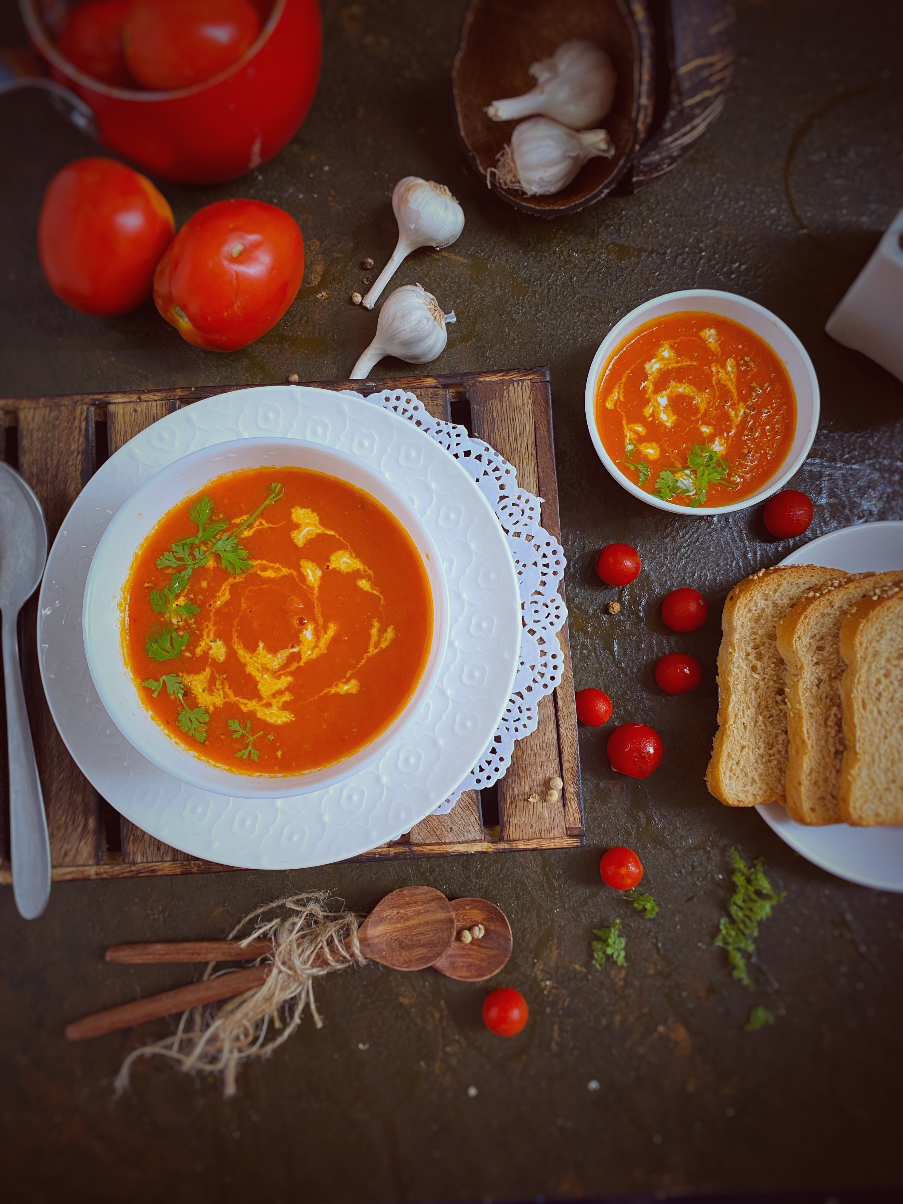 This Tomato soup is absolutely comforting, tastes delicious & is flavor packed. A good tomato soup is all about flavors, with a right balance of sour & sweetness.