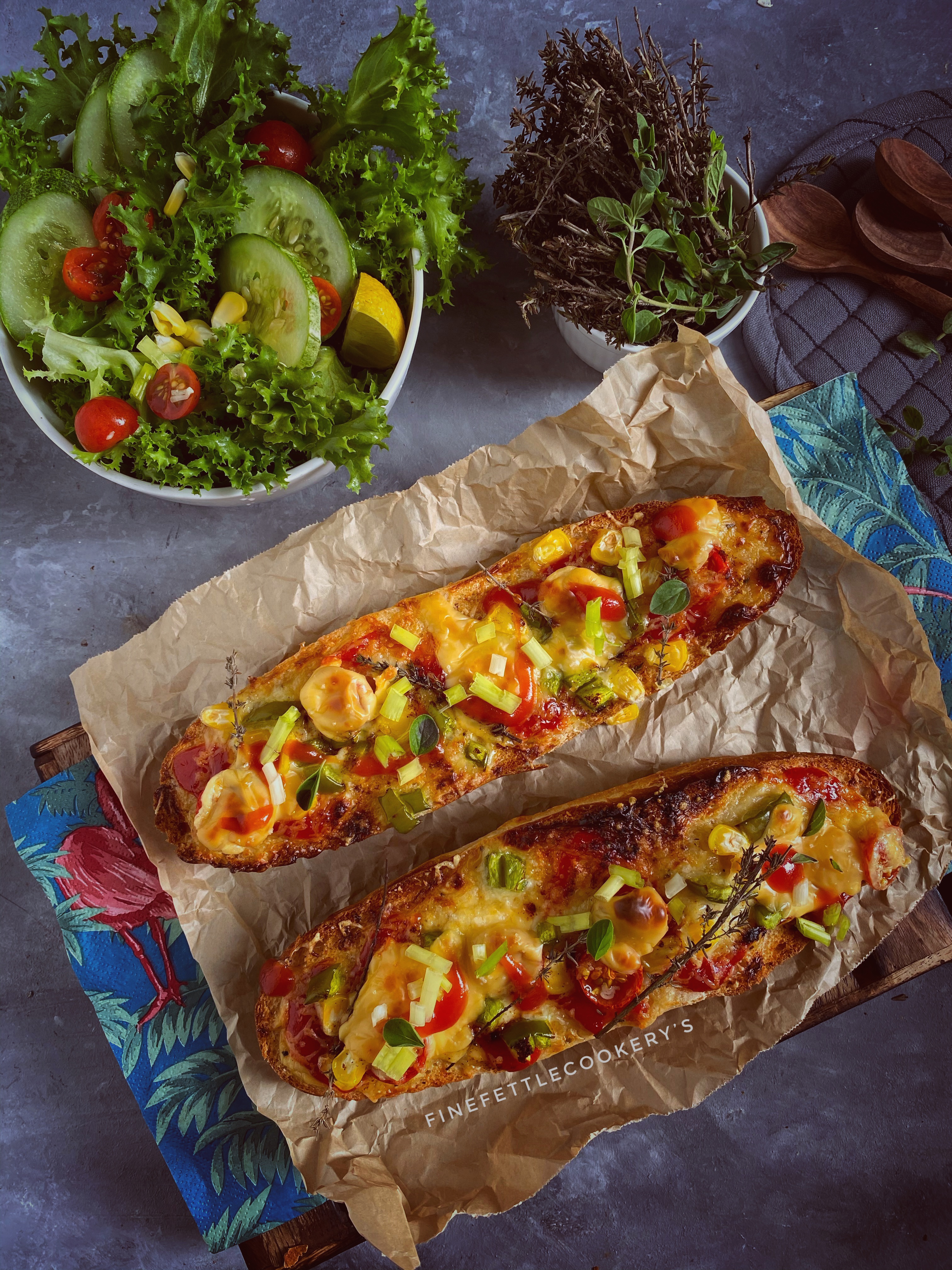 - Loaf of Baguette Bread cut in half and sliced lengthwise