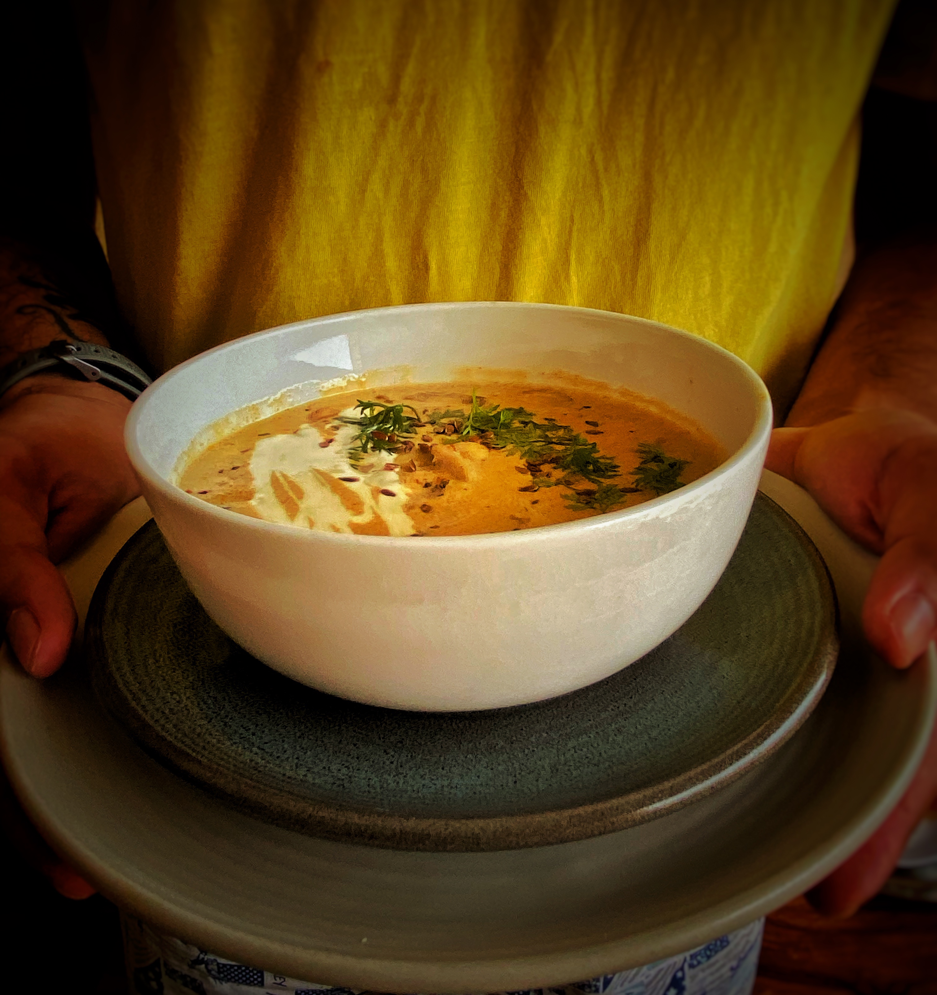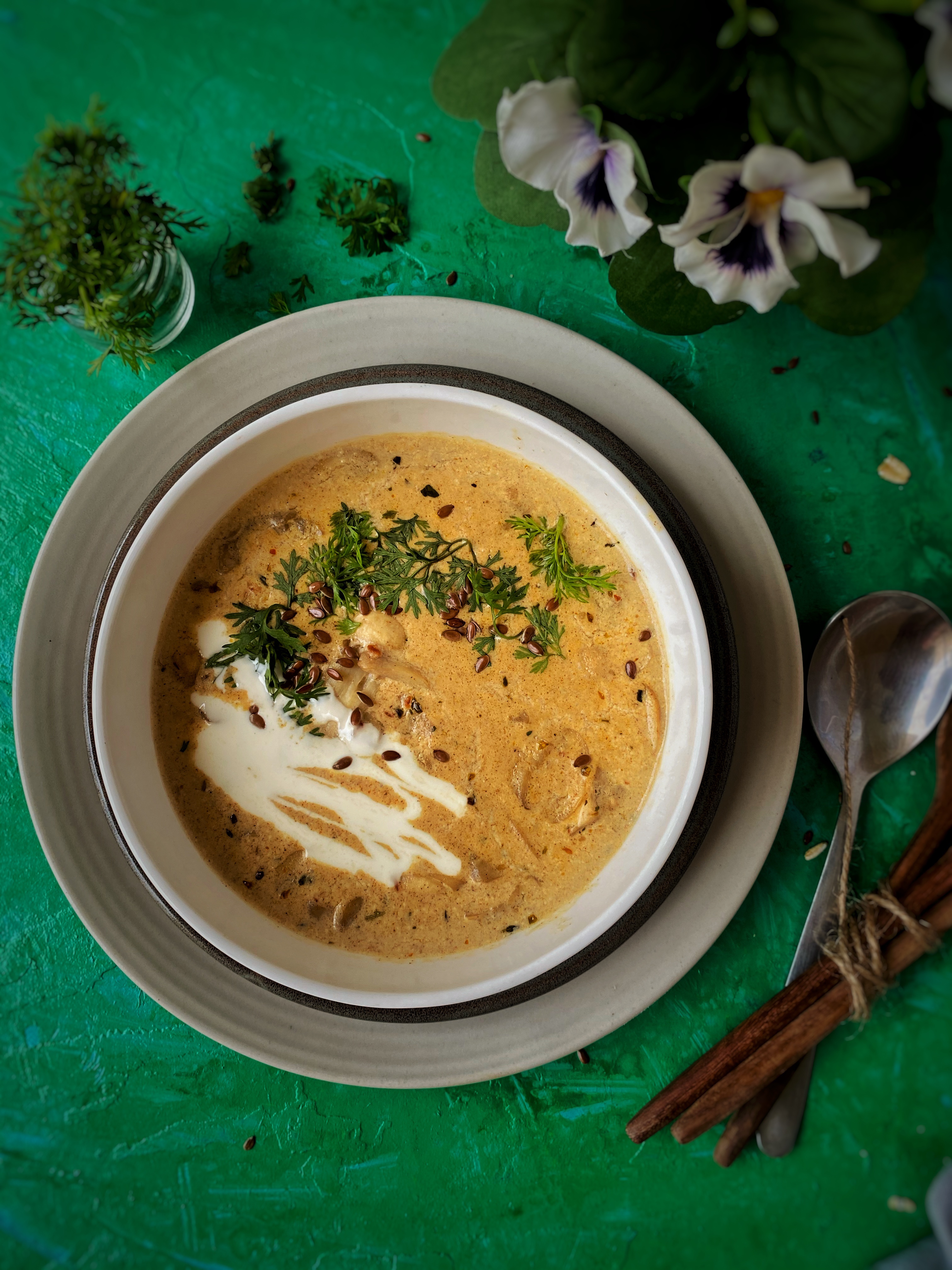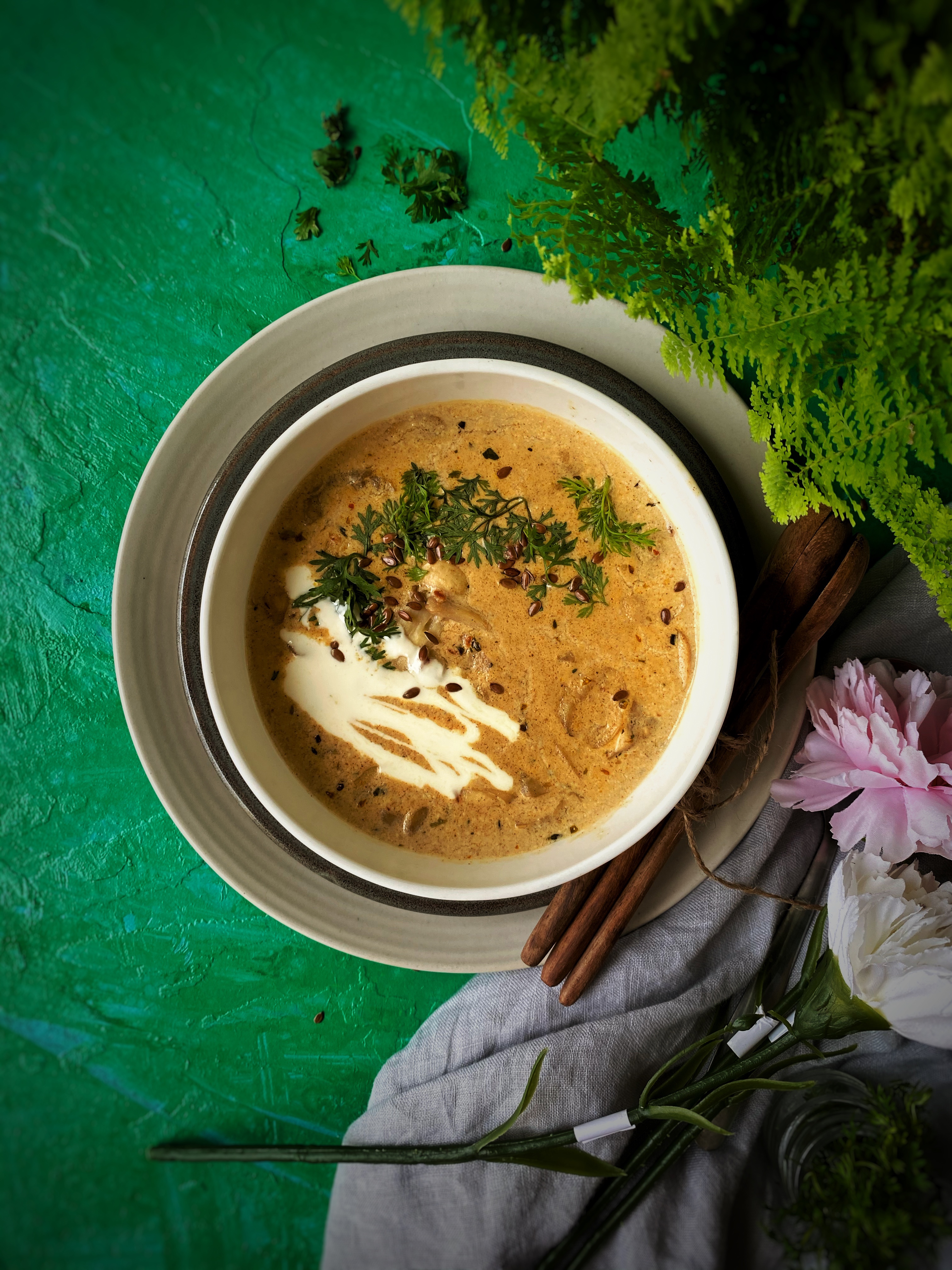 - Now soup is ready. Garnish with fresh herbs, flax seed and cream.