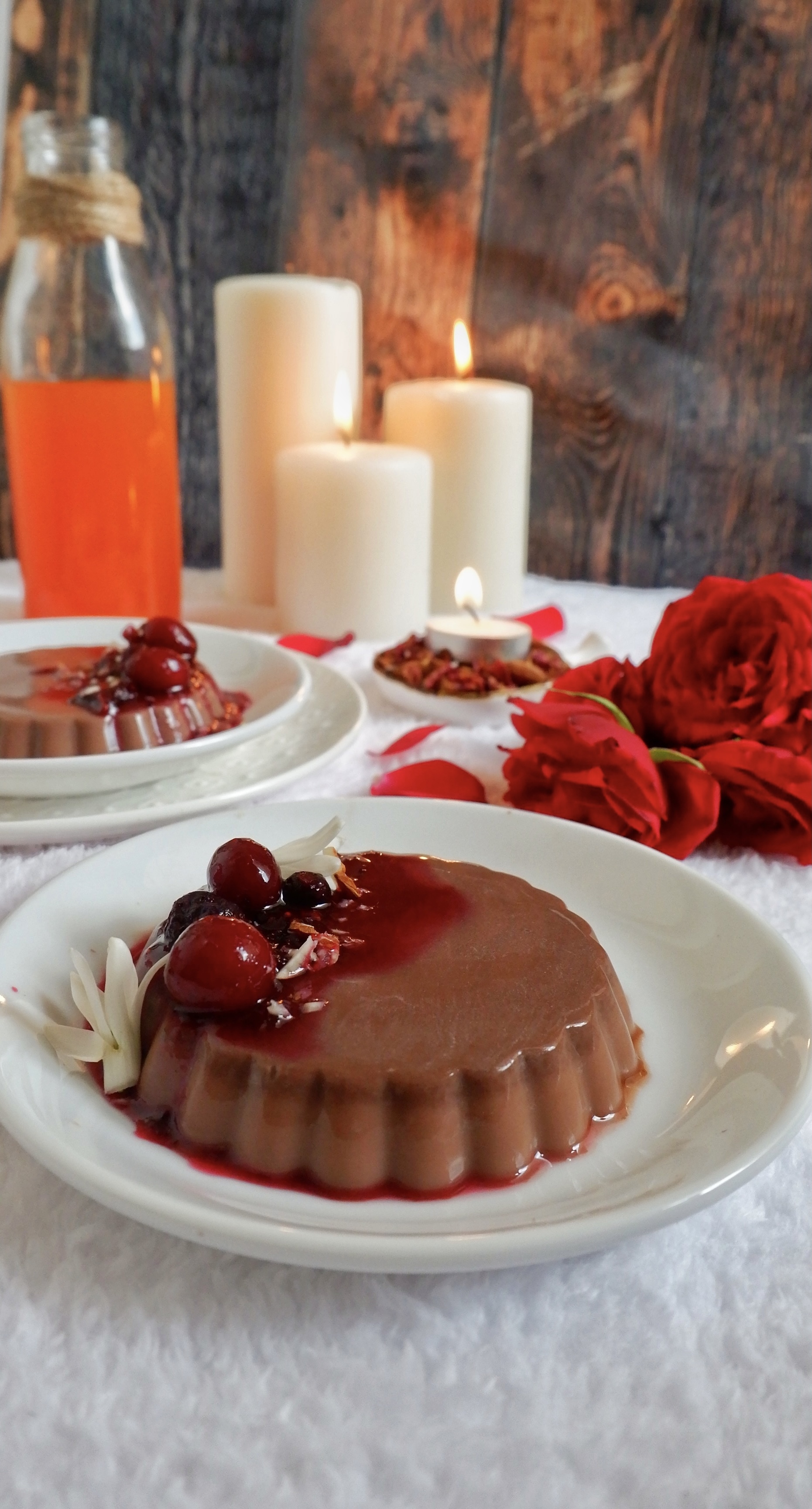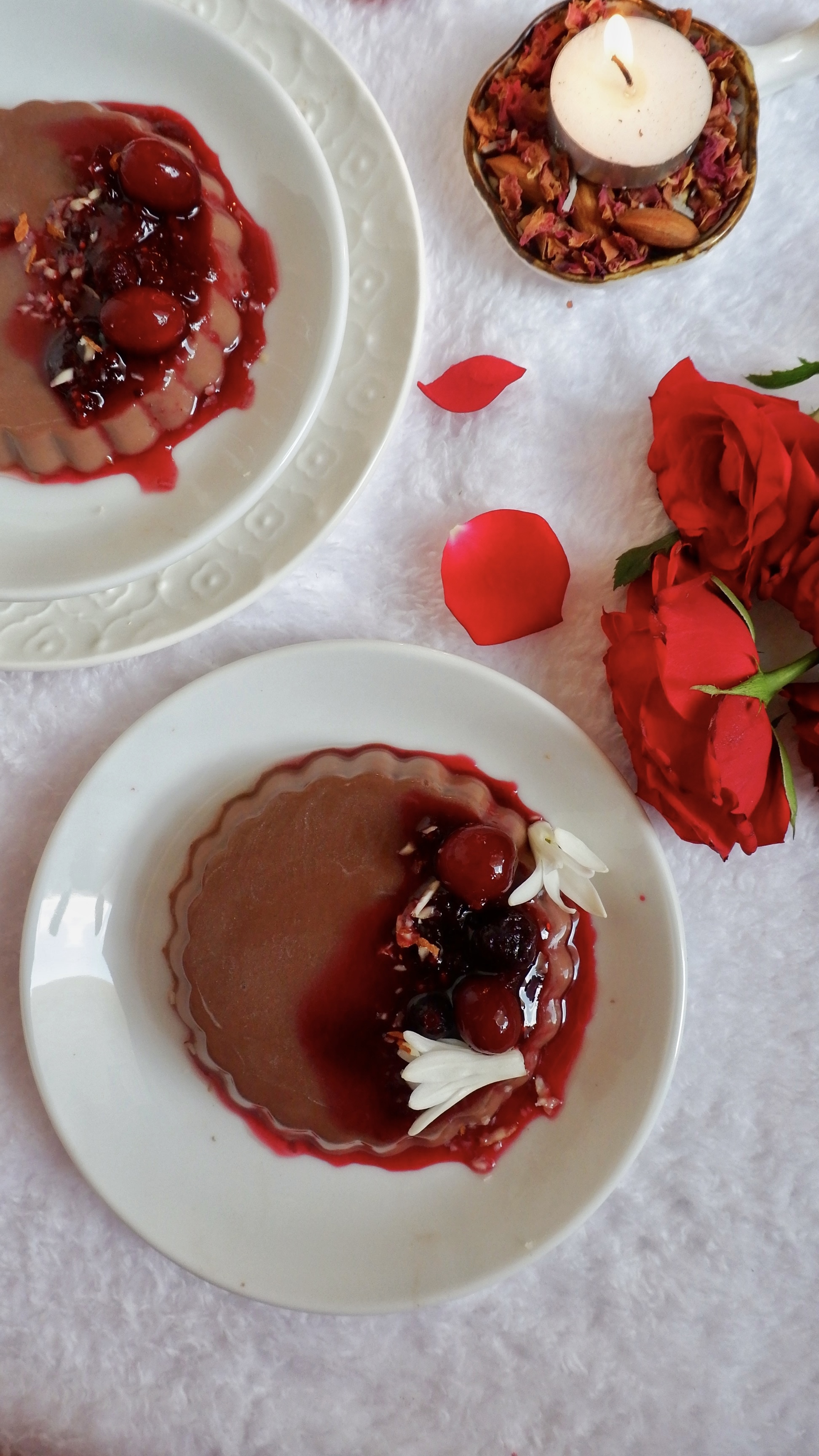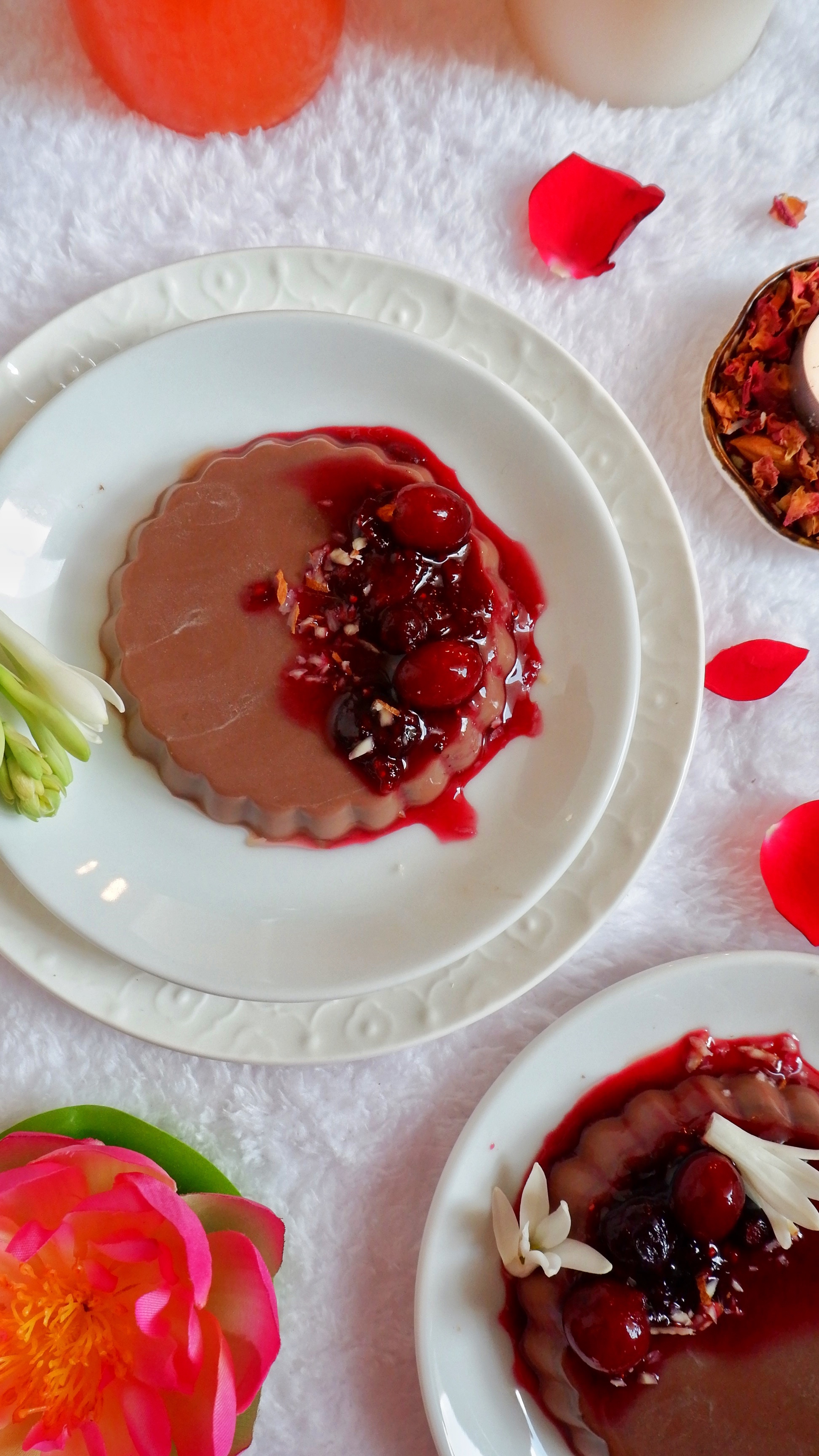 Chocolate Almond Milk Pudding with Berry Sauce