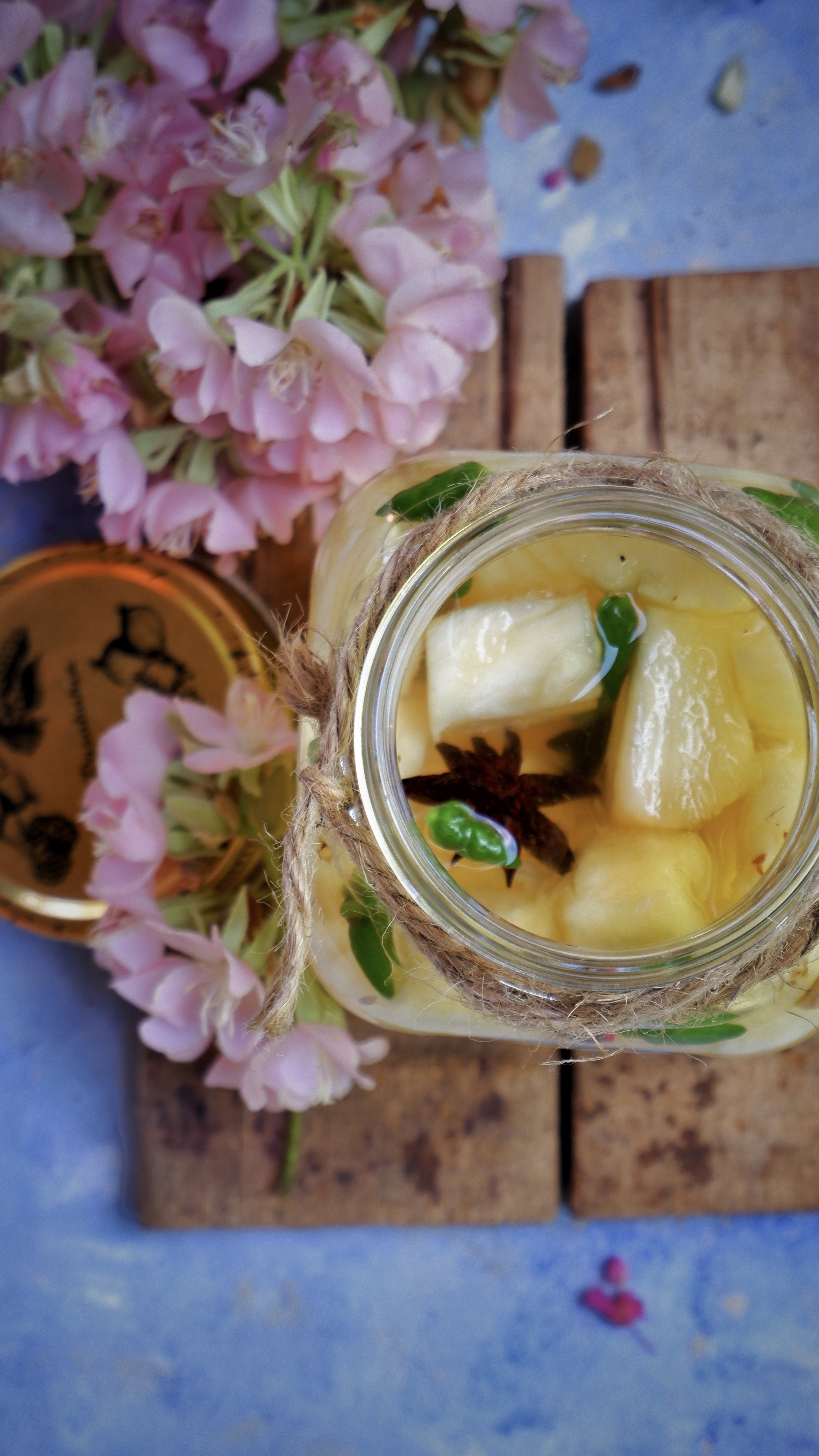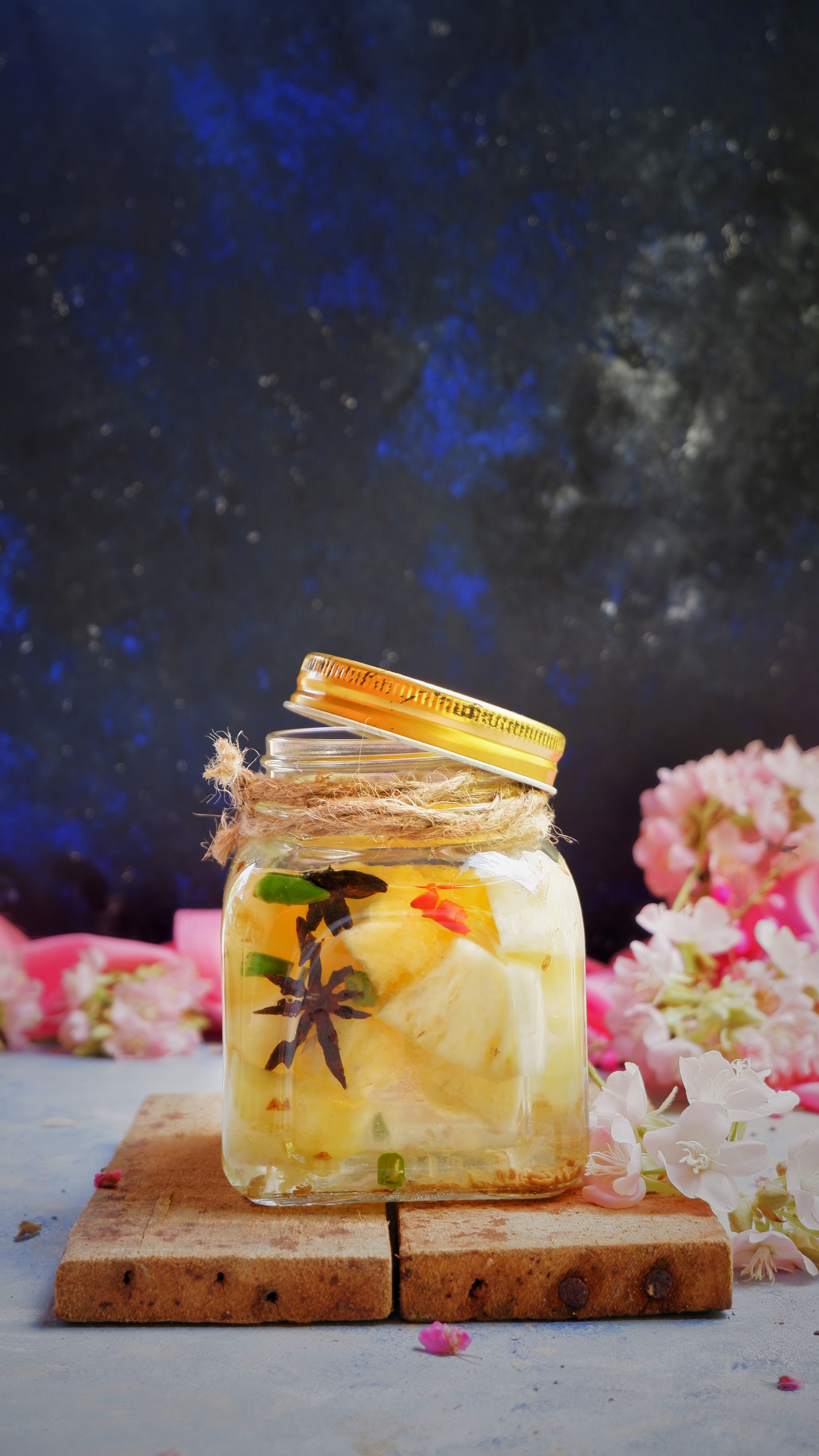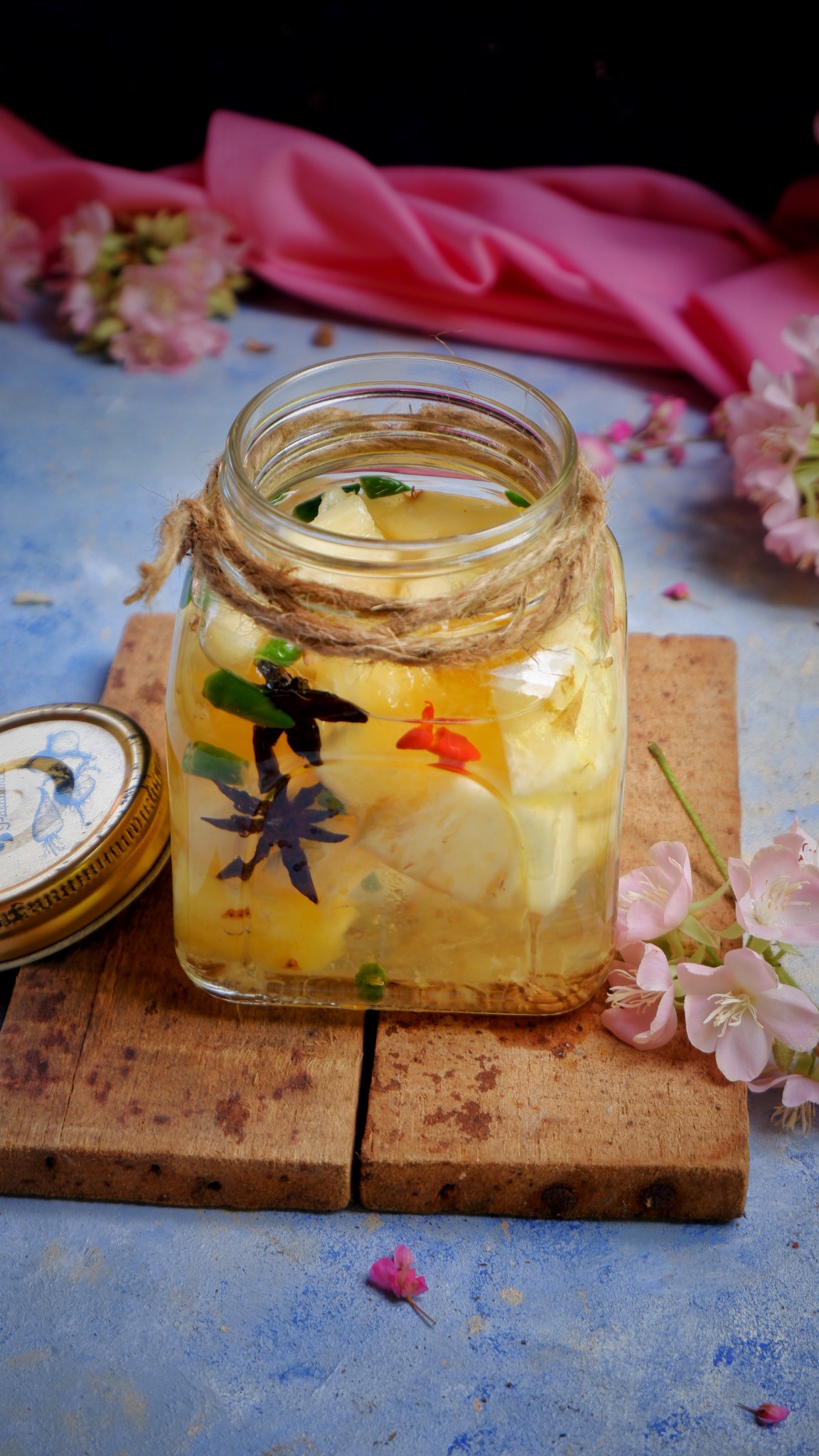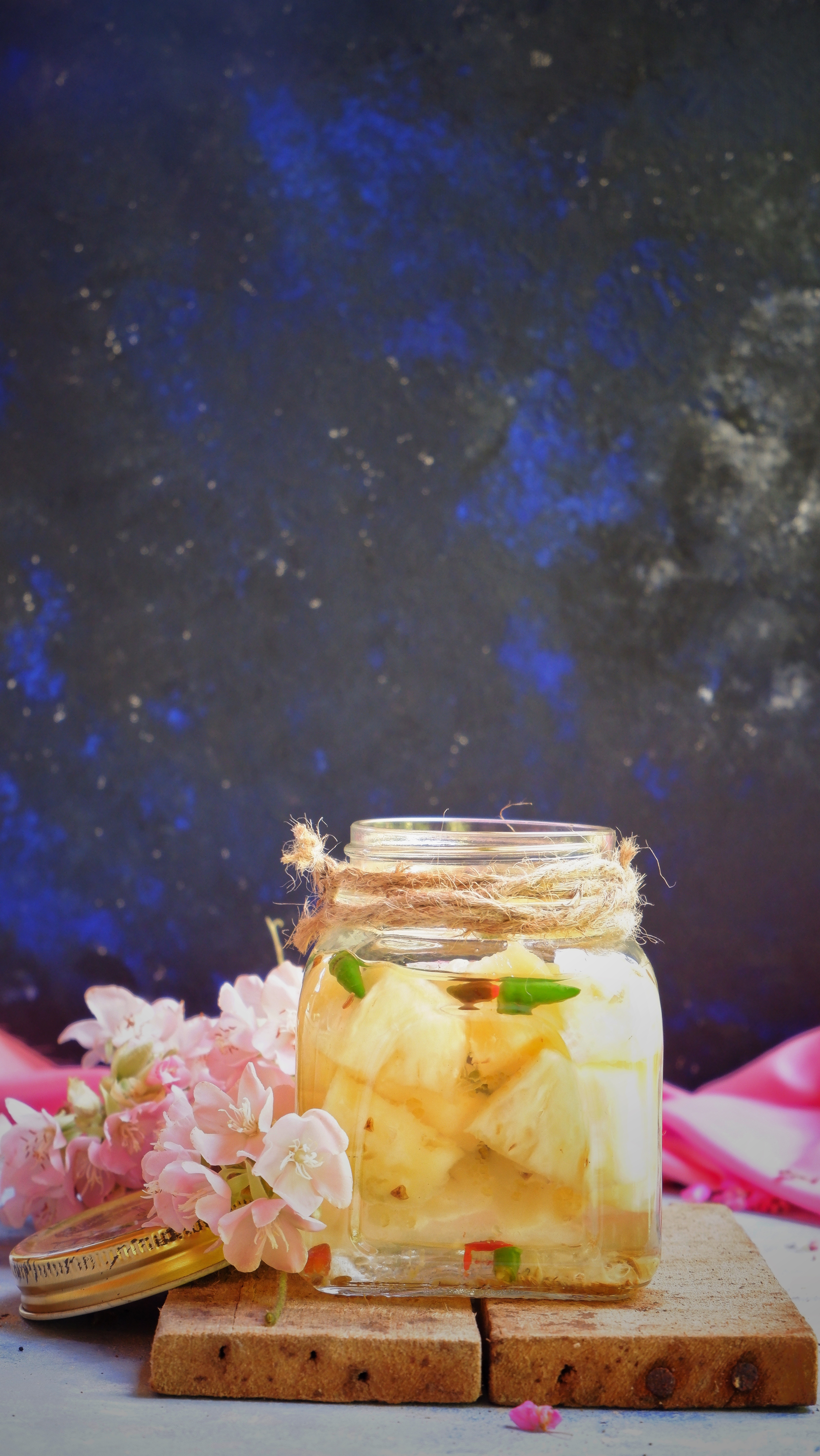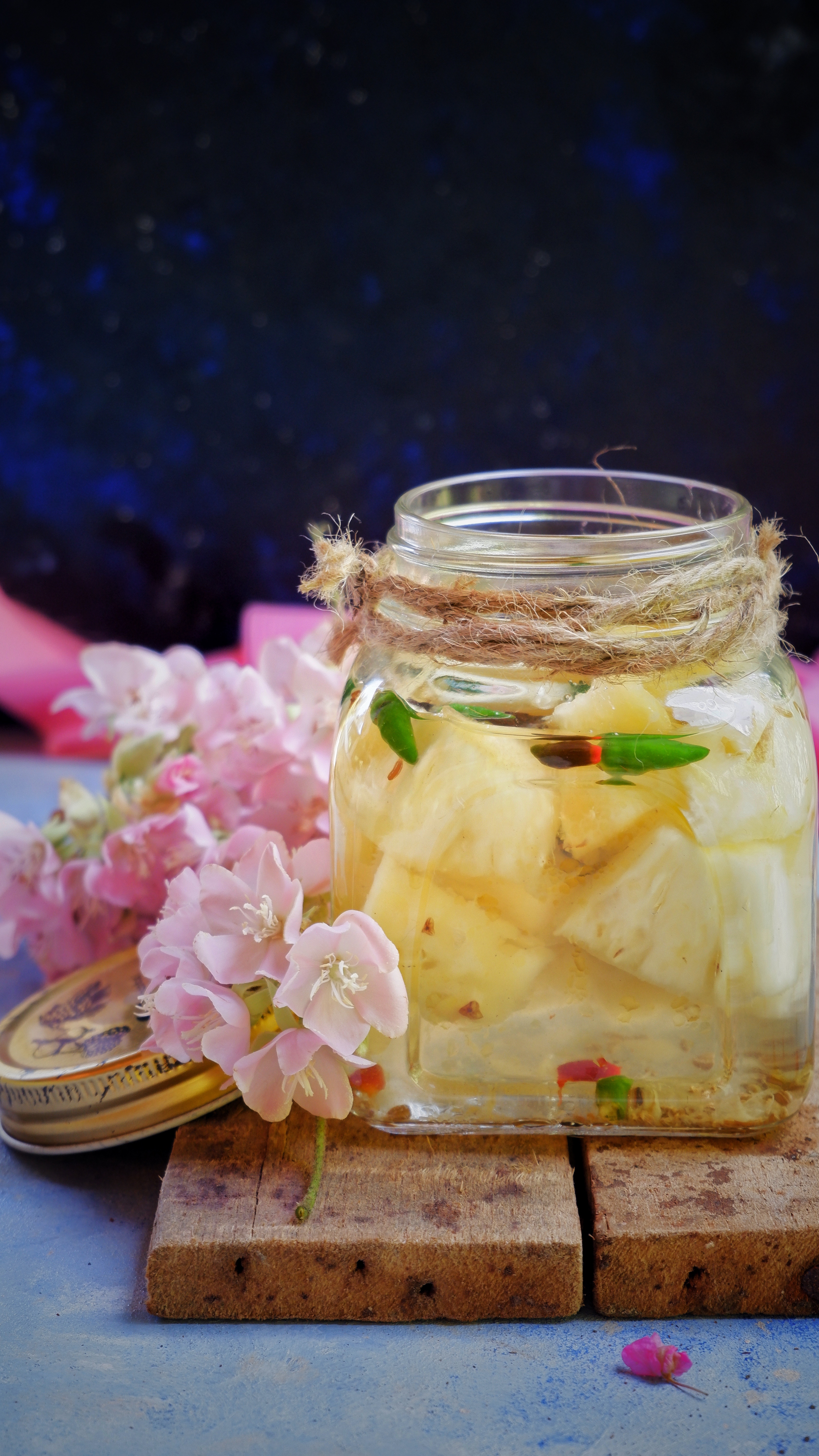 This spicy pickled pineapple go very well with salad, sandwich topper or it can be eaten directly from the jar.