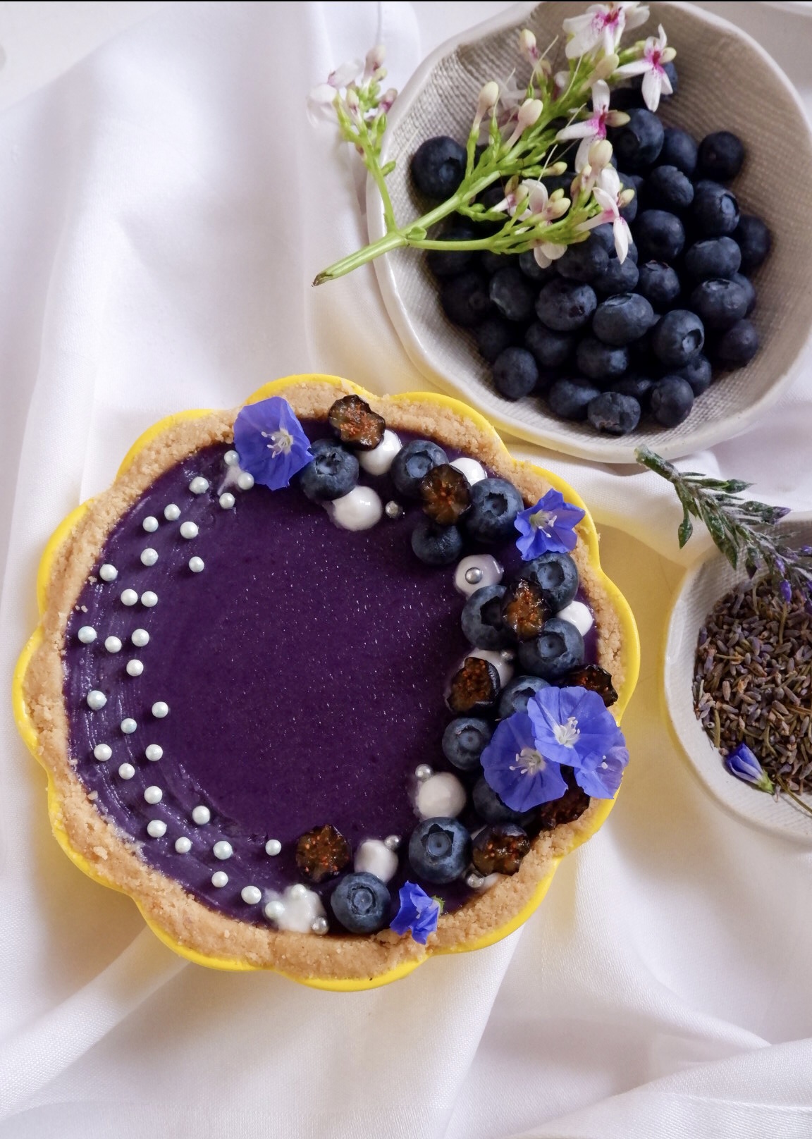 - Then keep it in a fridge for 30 minutes. Decorated with fresh berries, edible flowers and coconut cream.