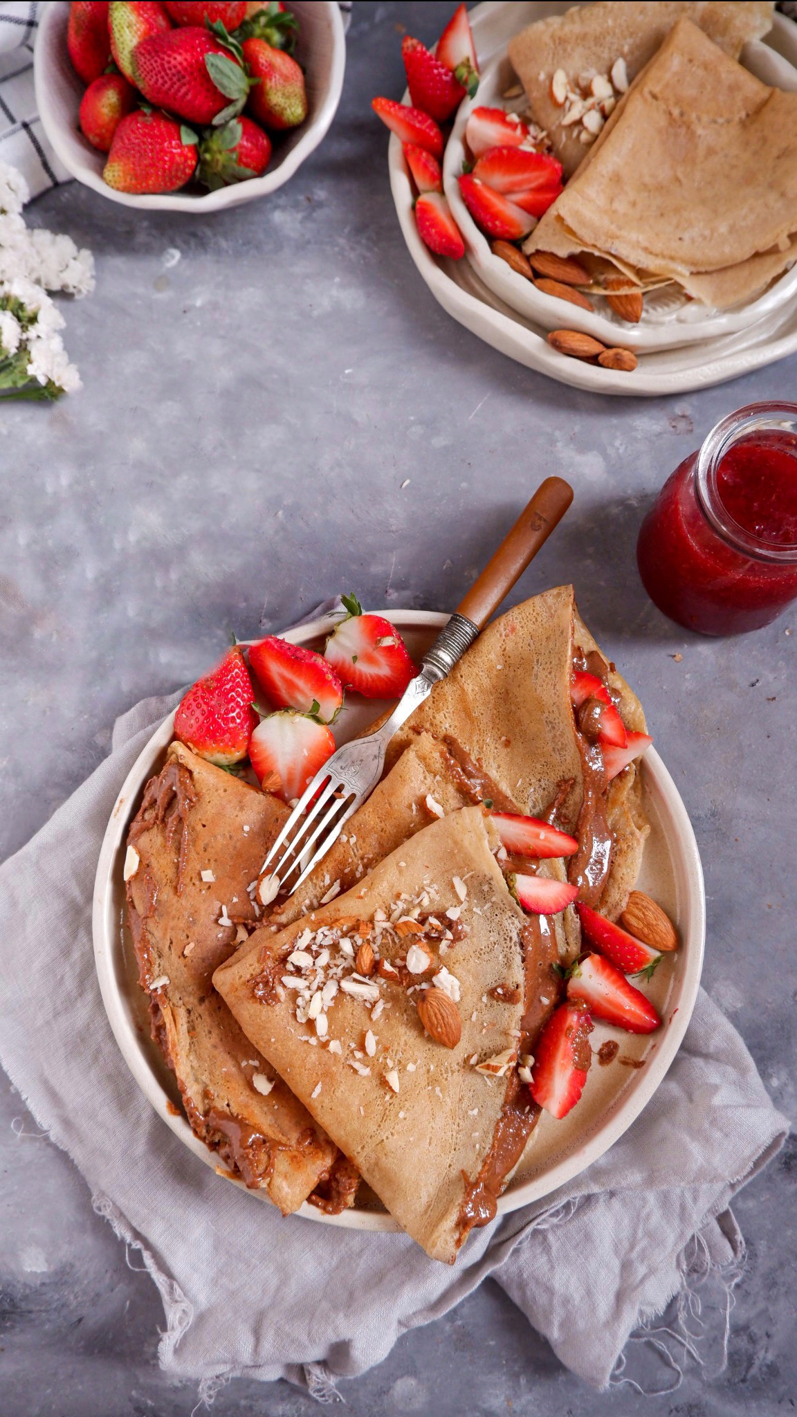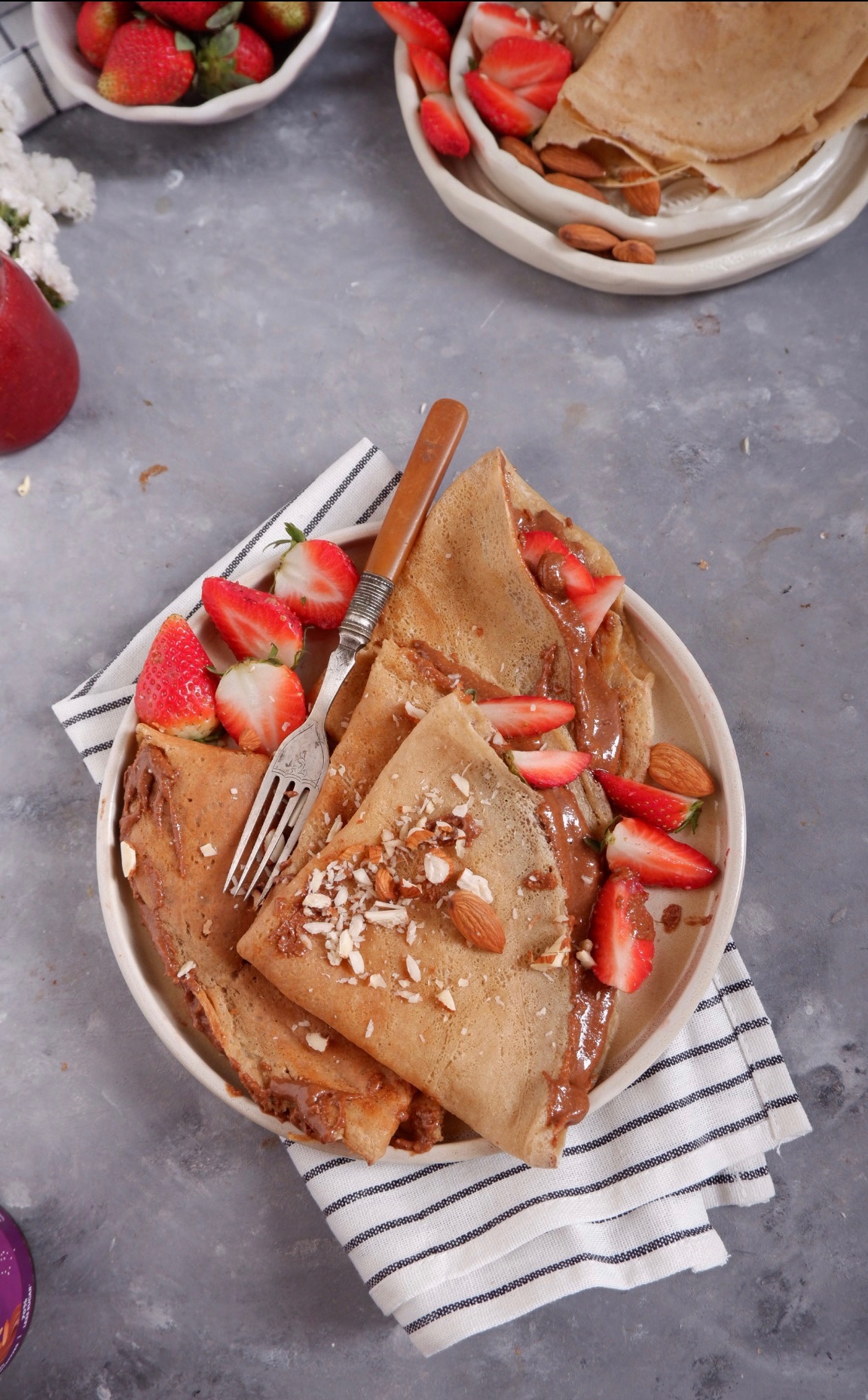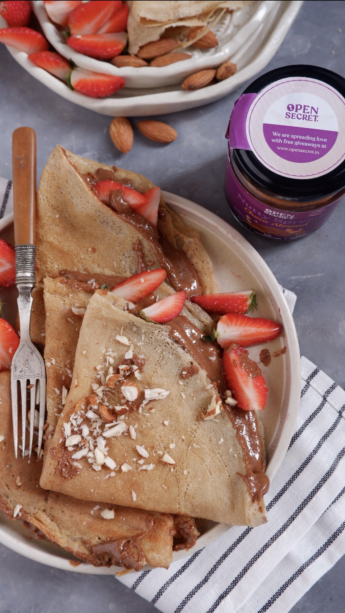 These Soy Wheat Almond Crapes are protein rich breakfast dish. Spreading choco almond makes this dish more delicious and nutritious.