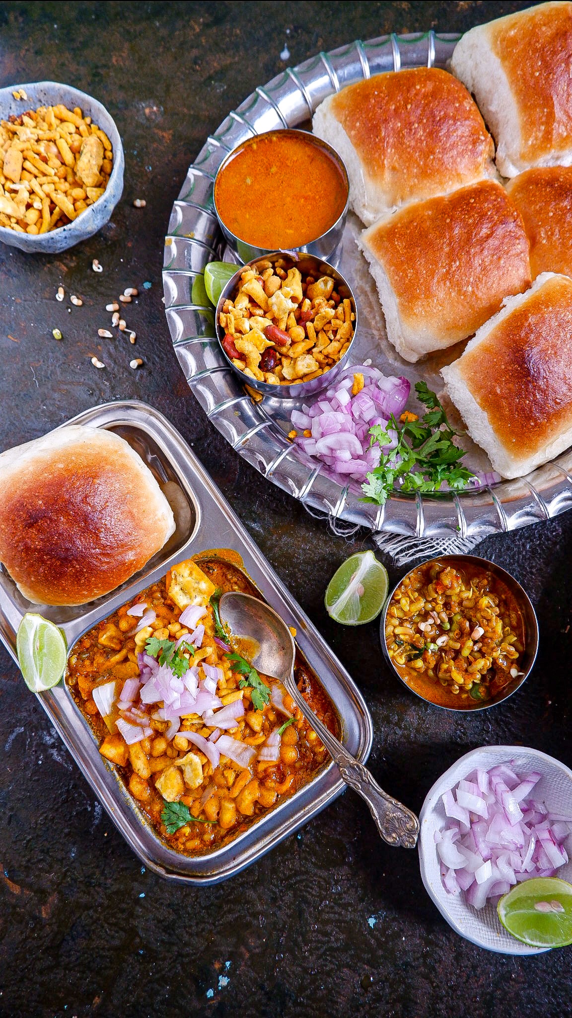 Misal Pav is a popular spicy dish from the western India, made of sprouts and spices served bread or pav.