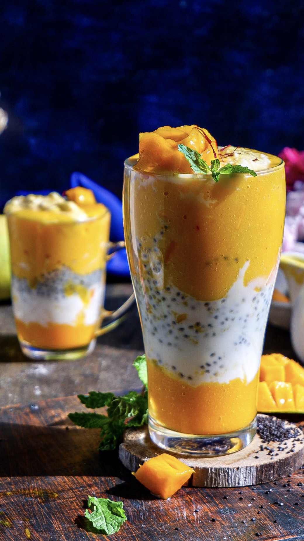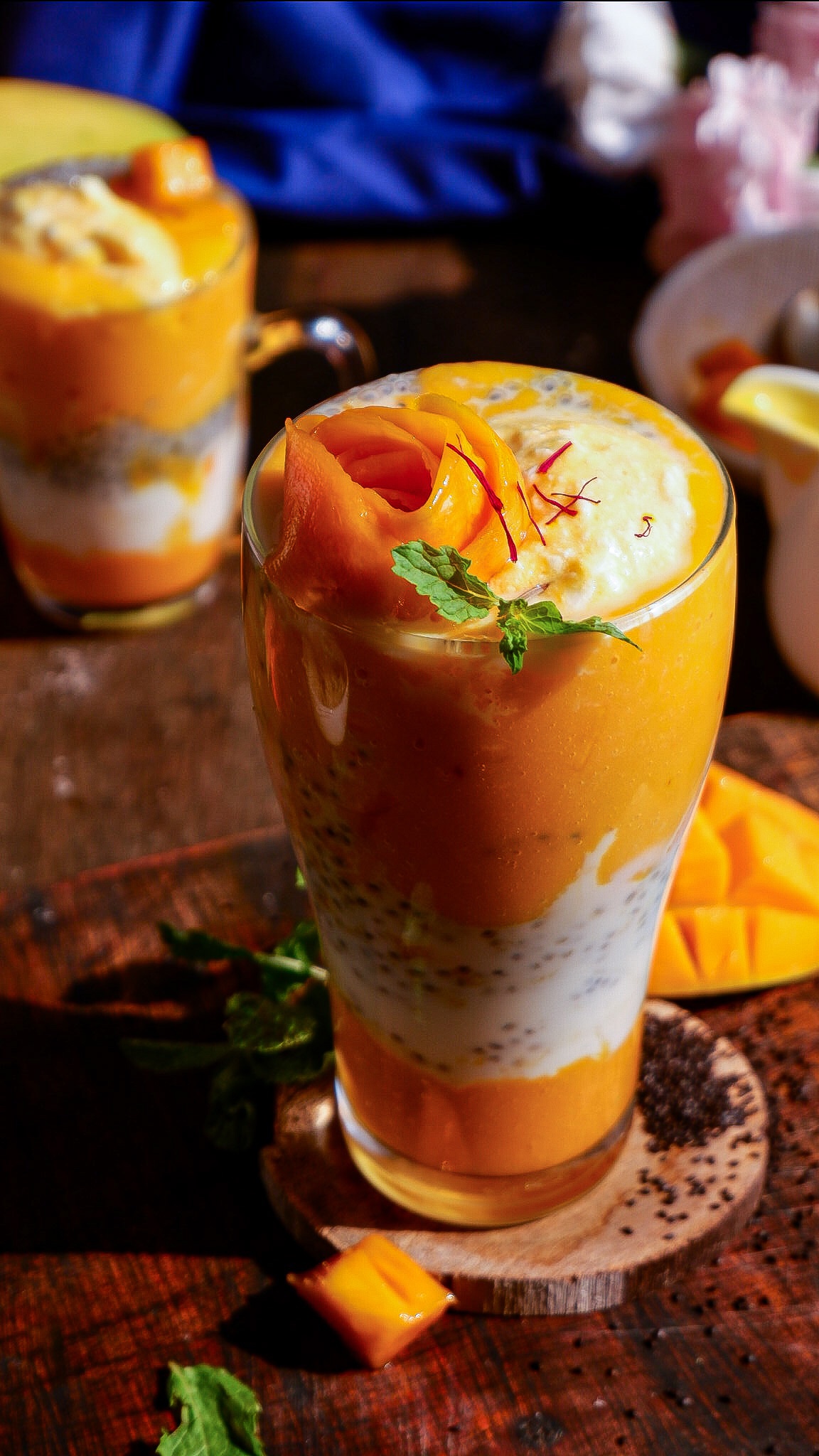 5. 1/2 cup mango puree + 1/2 cup skim milk + punch of saffron blend in a mixer make a smoothie