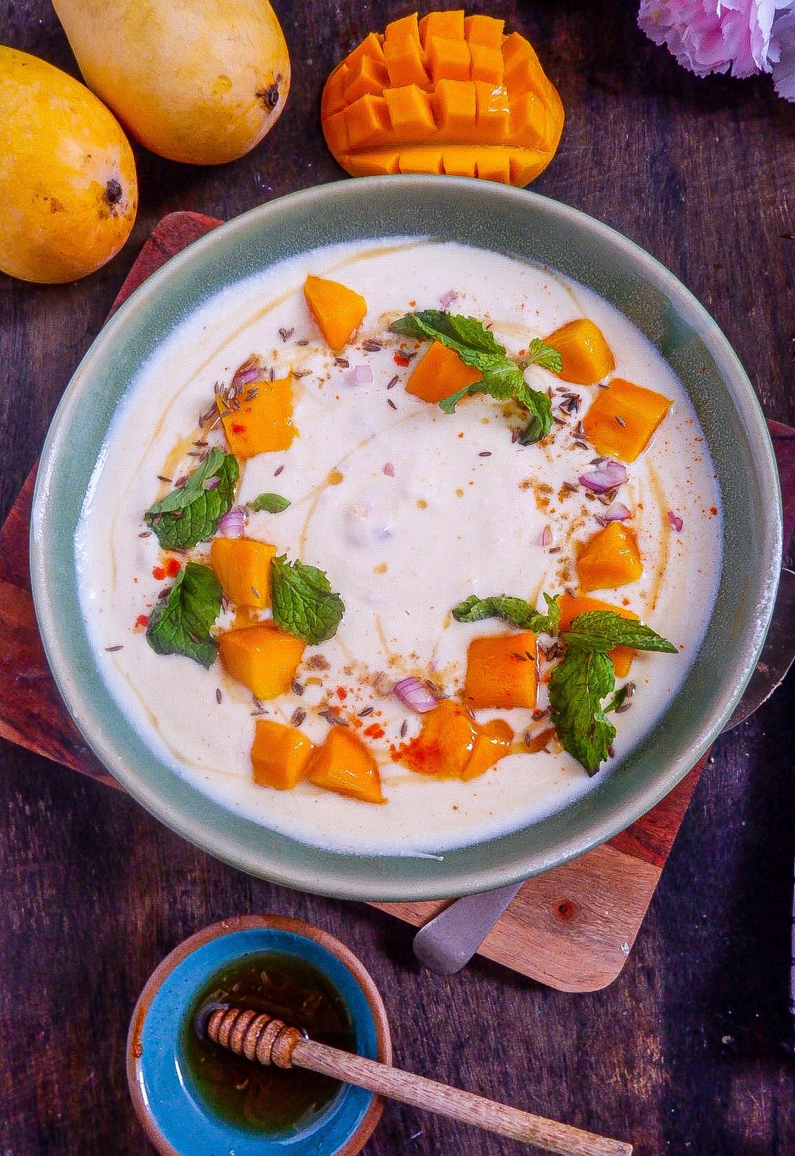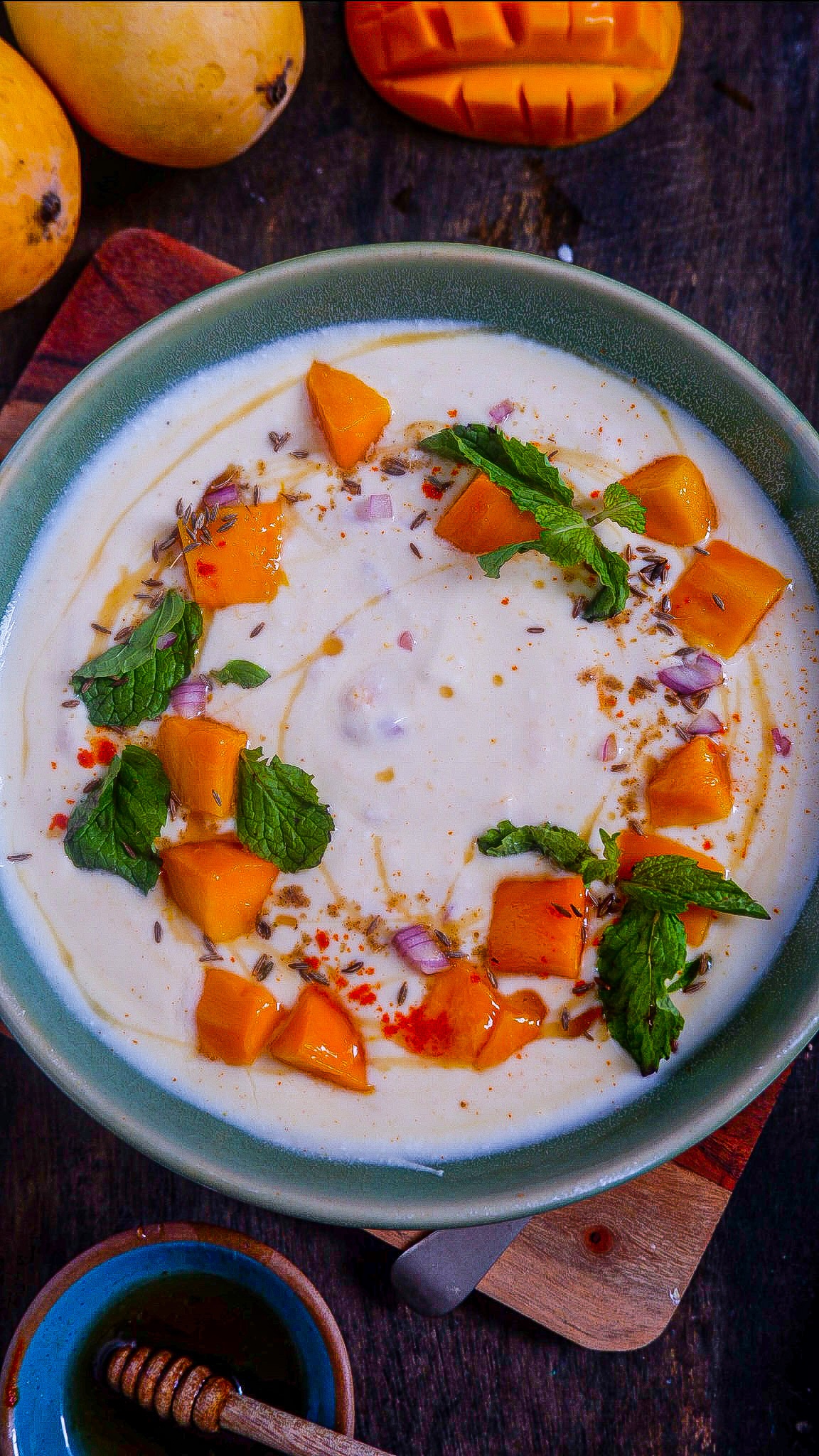 Mango Raita is a sweet and savoury raita, made of curd, ripped sweet mangoes and other spices.