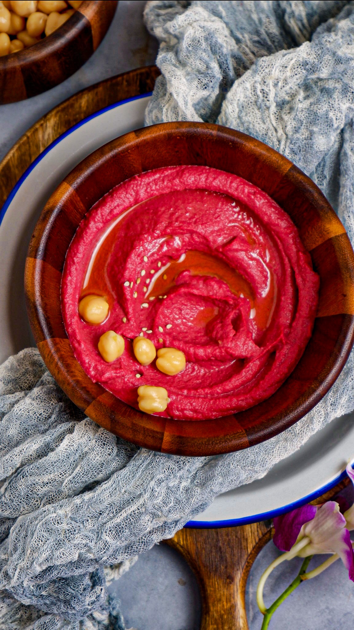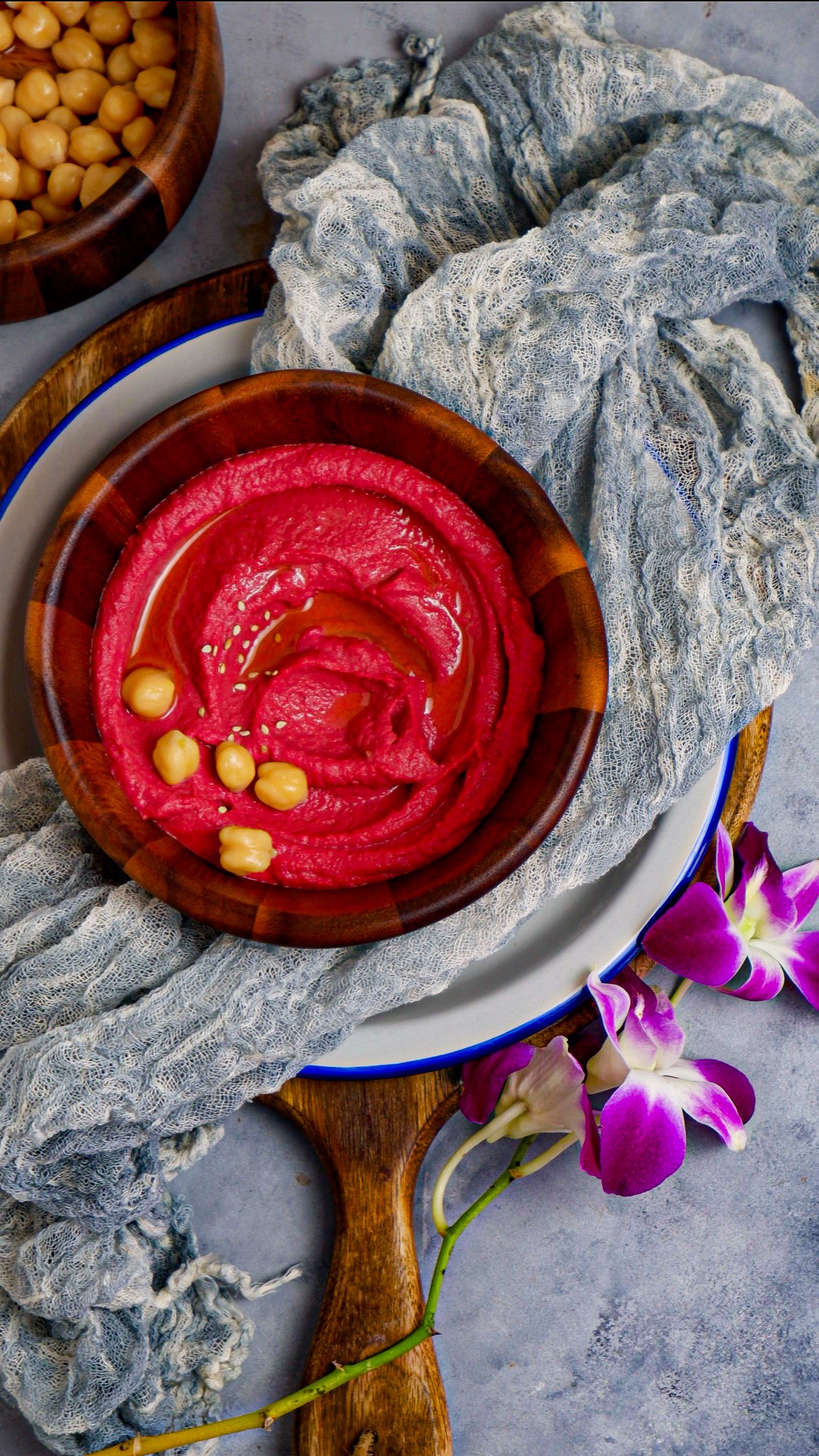 This bright and healthy, quick Beetroot Hummus recipe is perfect for any occasion to brighten up the mood.