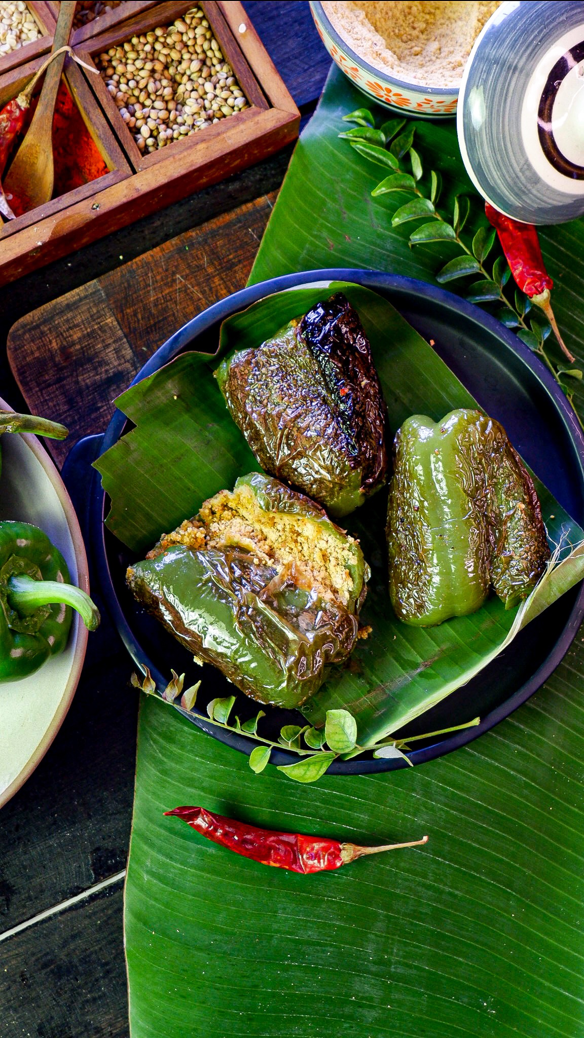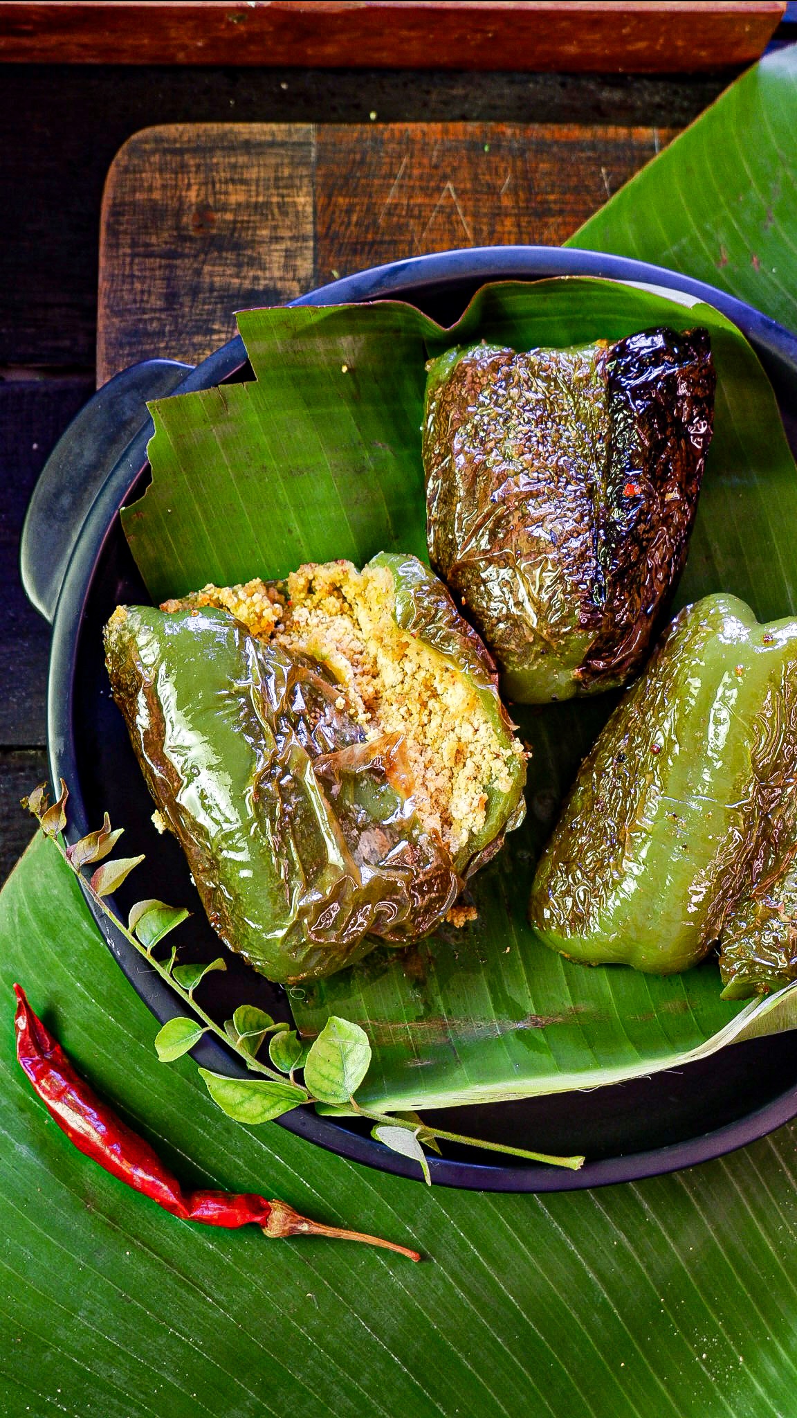 Malnad style Stuffed Capsicum recipe with recipe video. It’s a healthy vegan indian recipe using basic spices from indian kitchen.
