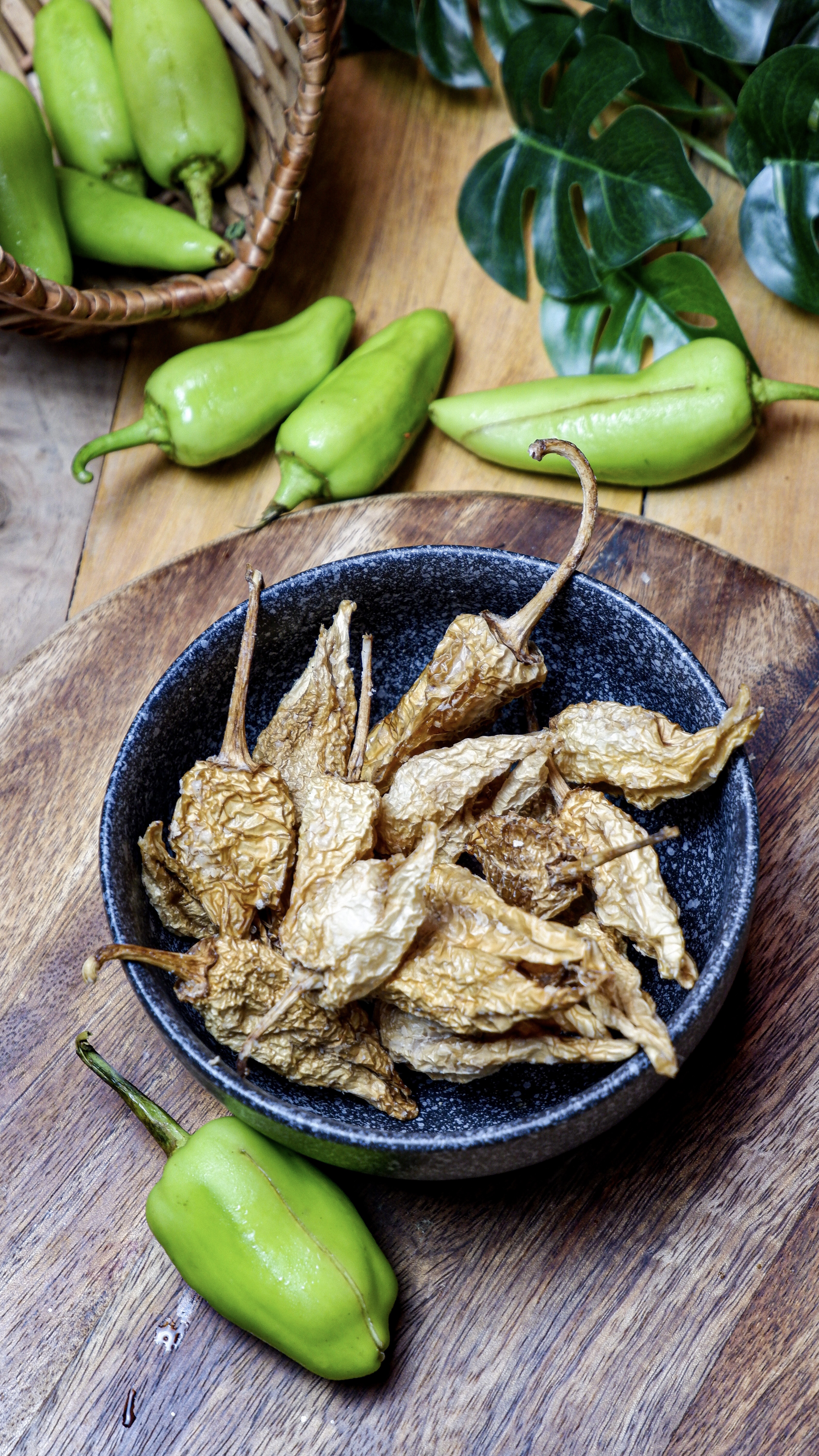 Curd Chilli / ಮಜ್ಜಿಗೆ ಮೆಣಸಿನಕಾಯಿ is a fermented sun-dried condiment that is popular throughout South India.