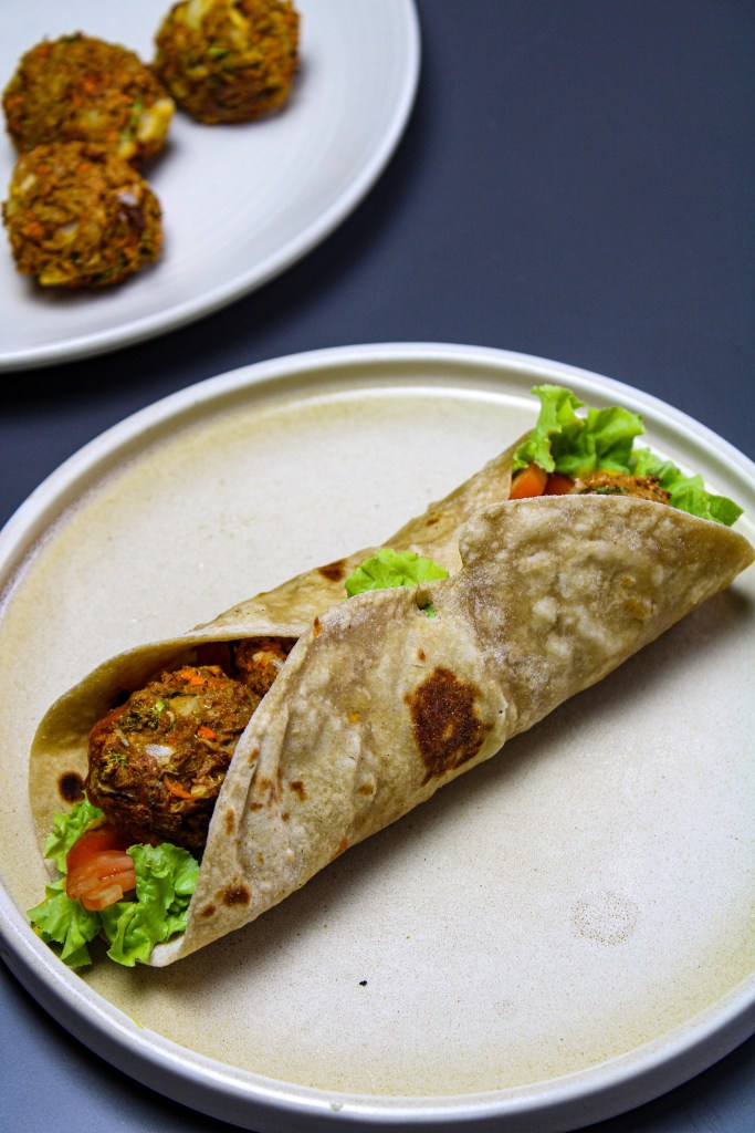 Soy Veggies Frankie is a delicious, healthy meal made of paratha, green veggies, and soy balls.